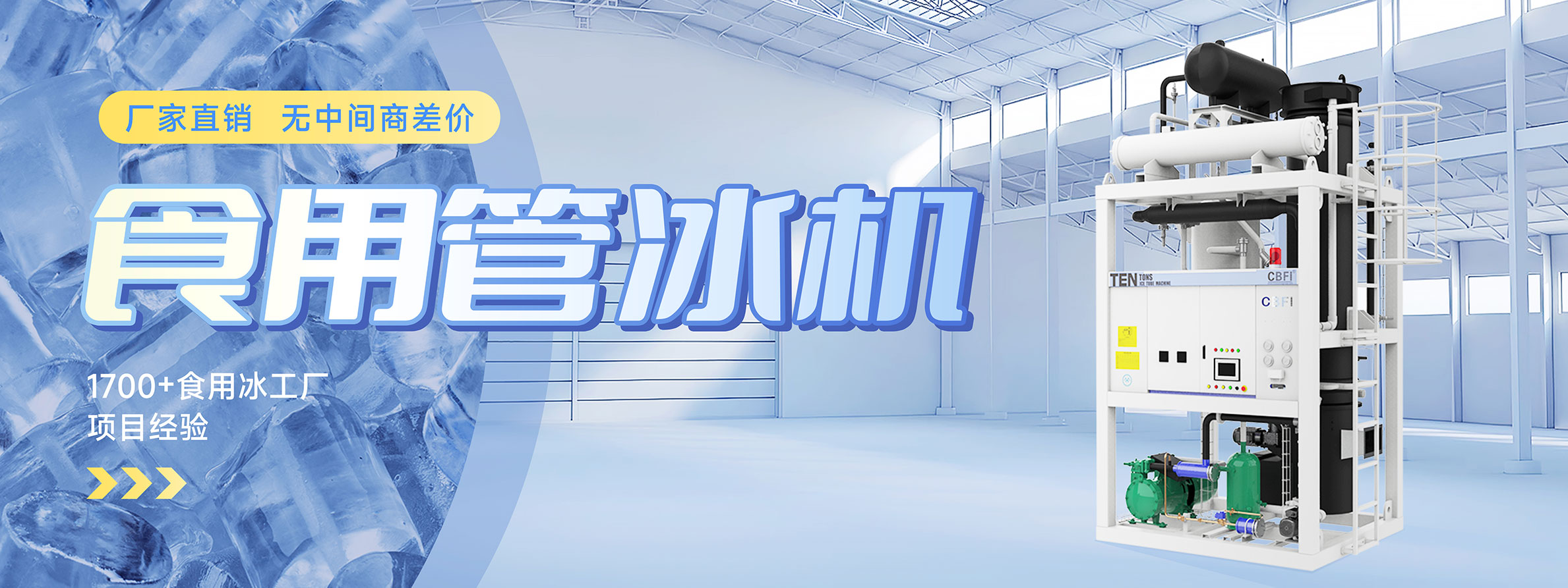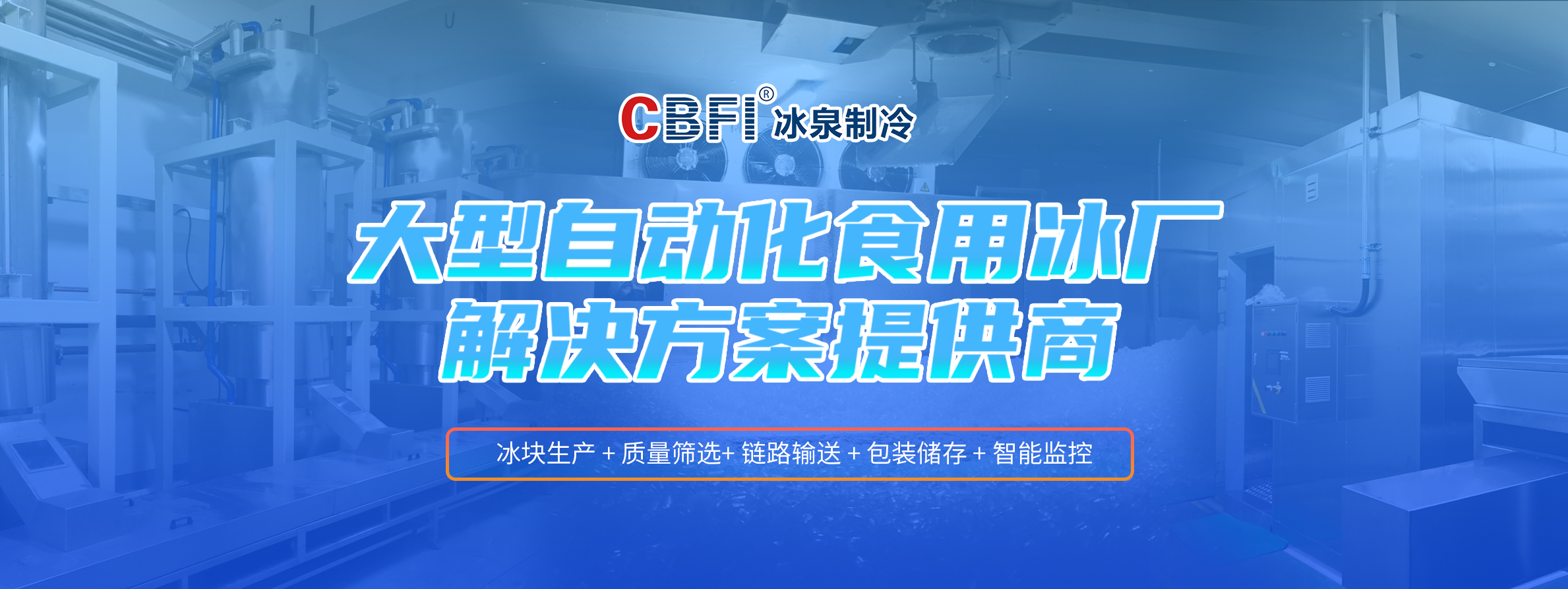 廣州冰泉制冷設備有限責任公司(商標CBFI),大型氟制冷制冰設備行業(yè)開拓者,是一家立足國內(nèi)、面向全球,集大型食用制冰設備、大型工業(yè)制冰設備、高端商用制冰機、成套制冰系統(tǒng)的研發(fā)、設計、制造、銷售、售后服務于一體的創(chuàng)新創(chuàng)業(yè)型高新技術(shù)企業(yè),是大型冰廠和冷庫工程解決方案服務商。